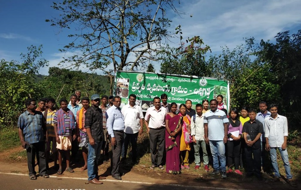 RNBA organized an exposure visit supported by APPI to Visakhapatnam to learn on the subject of Zero Budget Natural Farming. The visit was carried out from 11th November 2018-14th November 2018. The visit was organized for APPI 3 Partner NGOs comprising of 9 participants (3 Coordinators & 3 farmers from RNBA, 1 Coordinator & 1 farmer from CWG and 1 community organizer from PHDO). Kovel Foundation facilitated the 3- day visit. RySS and Kovel Foundation gave a comprehensive orientation on ZBNF programme before the visit begun. Team RNBA guided by Kovel Foundation visited Suridepalem village, Chanagadar village inchetarpallu district, Madeem Village in Vizag district of Andhra Pradesh and Sanganavin at Lingabaram village in GKVD Mandel. Farmers under ZBNF Programme are practicing 5 layer model plantation, natural pest management, and dissemination of knowledge to farmers/SHGs through small and portable projector, four wheels principle on SRI Fields and intercropping. The purpose of the visit was to generate an exchange of experience and good practices. We learned that National Bank for Agricultural and Rural Development (NABARD) through Girijava Vikash Surchandra Seva Shewstham (GVSSS) Resource cluster supported thirty lakhs (Rs. 30, 00000/-) as loan to women groups for sustainable livelihood as they continue to help the farmers through FPO (Farmers Producers Organisation) and facilitate farmers, bringing positive change.